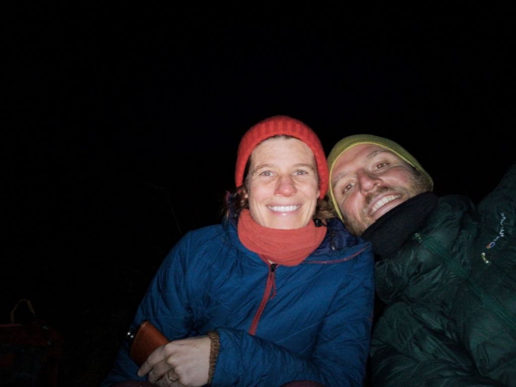 Een slaapplaats vinden is niet zo eenvoudig. Het ligt er overal veel te zompig bij om de tent op te slaan. Campings zijn er niet en bivakplaatsen al helemaal niet. In een vallei vinden we dan toch na wat zoeken een plekje naast het pad. Het is 17u en de avond valt snel. We zetten de tent op, maken ons nest, plooien de stoeltjes uit en installeren ons met onze fles rum in de stoeltjes. De pot schaft pasta al fungi, klaar en opgeschrokt in no time. Even schrikken we wanneer er een terreinwagen komt aangereden op het pad naast ons, het is ondertussen stekedonker en de lichtbundel zet onze tent in de spots. We voelen ons toch wat betrapt en zien de bui al hangen, maar de wagen rijdt door en verdwijnt in het donker.