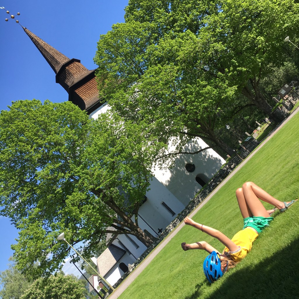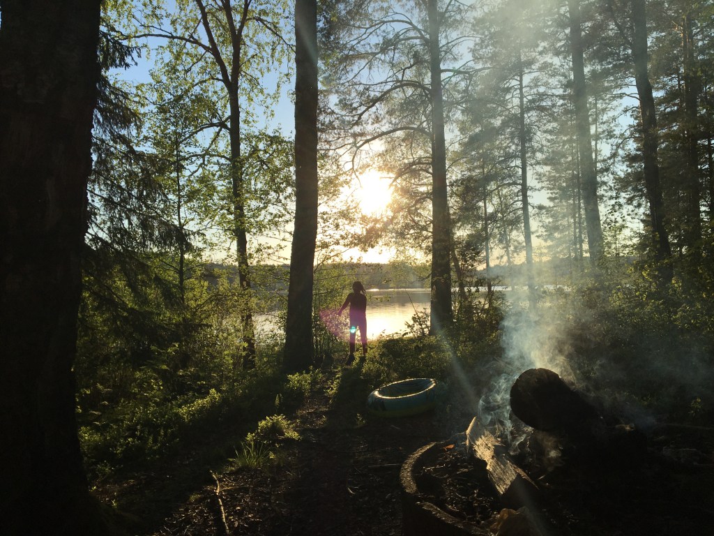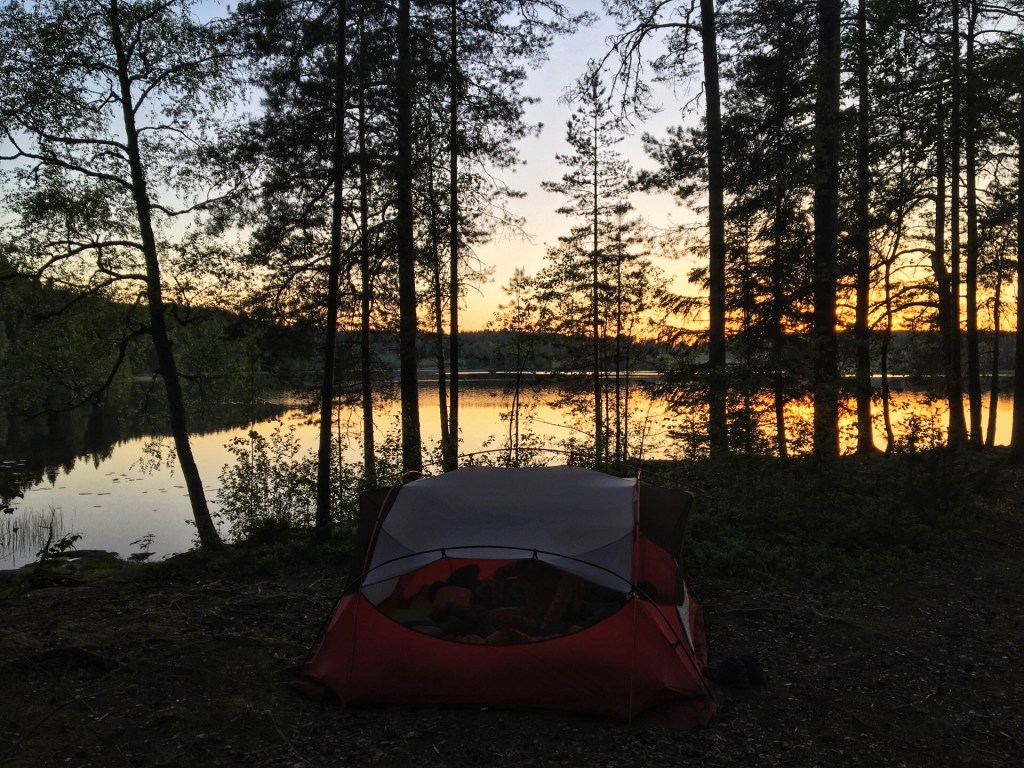 De dag is voorbij in no time. We zoeken nog eens een vindskydd op 5 km buiten Arvika. Er is een meertje om te zwemmen en te plonzen. Eindelijk! Dit is hoe we ons zweden hadden voorgesteld. Fietsen in de zon en elke dag zwemmen in 1 van de ontelbare meertjes. Er komen ook een paar groepjes jongeren zwemmen. Eén groepje komt het bospad afgewandeld met een giga box op wieltjes die ze met 3 duwen. Ze zijn braaf en luisteren heel zacht naar hun harde muziek.
