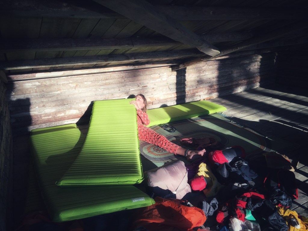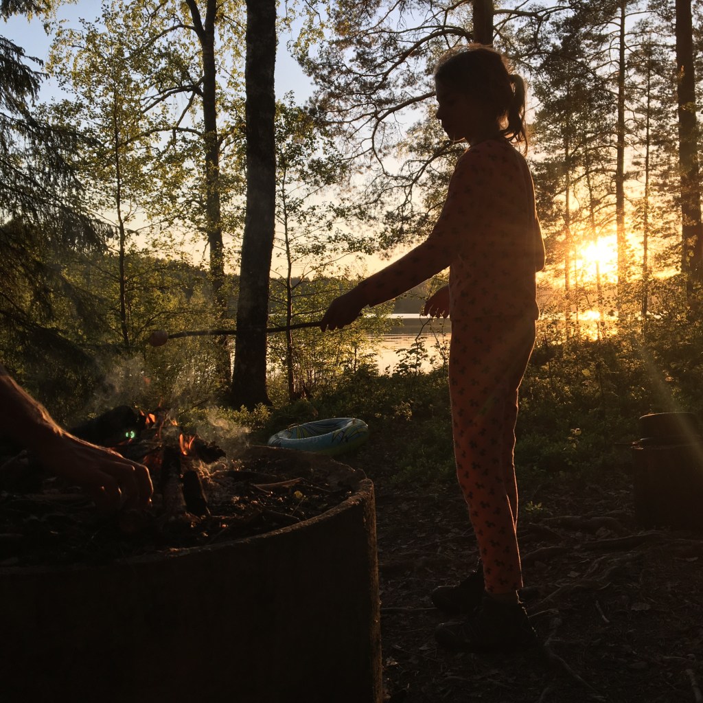 Het is een mooie avond. Zoals steeds is de lucht oranje en roze als de zon ondergaat. Zoals steeds drinken we een warm biertje dat al de ganse namiddag in de zijzak van de fietszak zit. Zoals steeds spuit het bier uit het blikje als we het open trekken. Zoals steeds maken we een vuurtje. Zoals steeds is het knus in de tent. Zoals steeds kunnen Nanou en Ramon niet slapen want het is nog veel te licht en zoals steeds liggen ze 5 minuten later in dromenland. Het zijn fijne routines.