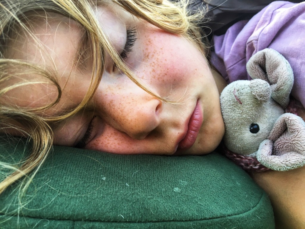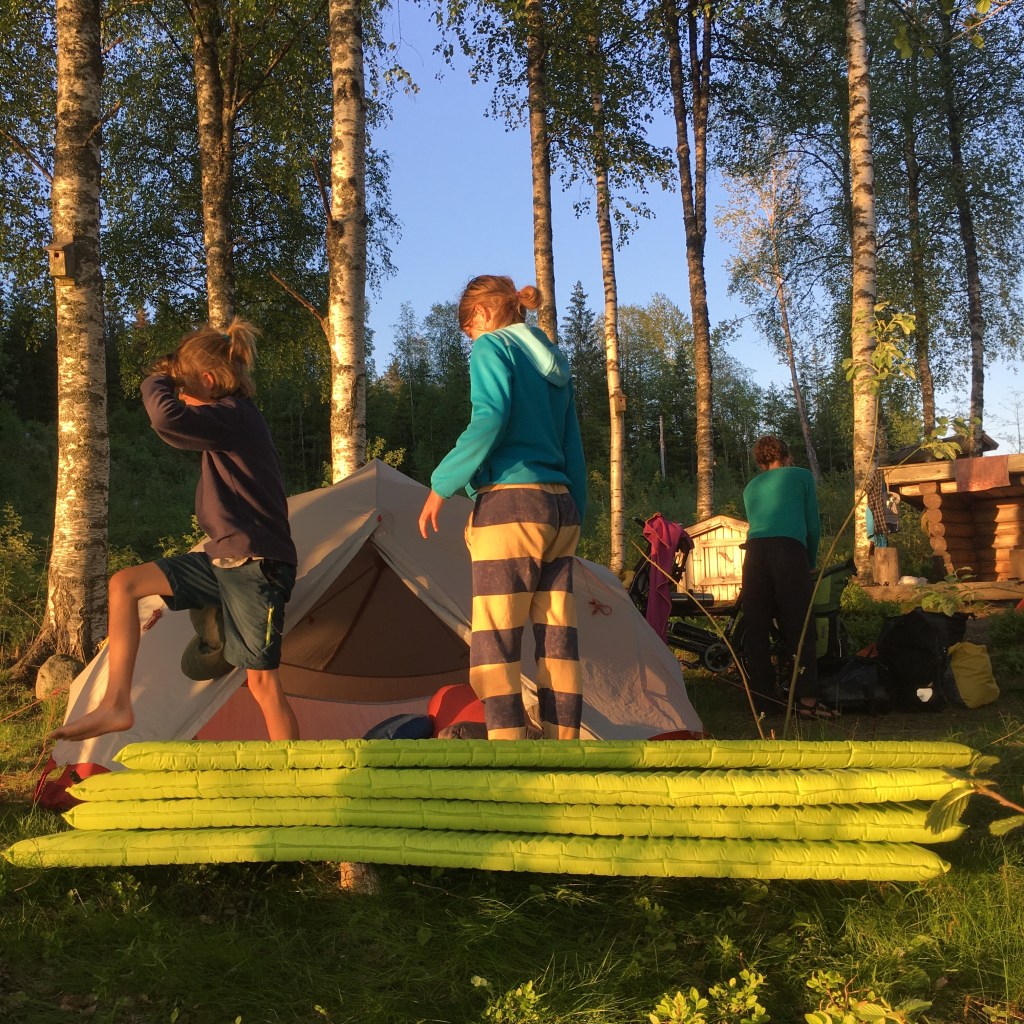 Vannacht sliepen we voor het eerst met enkel de binnentent. Dat zag er keigezellig en luchtig uit. Jammergenoeg sliepen we allemaal – behalve Ramon – niet fantastisch. Het wordt niet meer zo donker en met enkel de binnentent is het nachtgevoel helemaal afwezig. Nanou lag ook op een gigantische boomwortel.