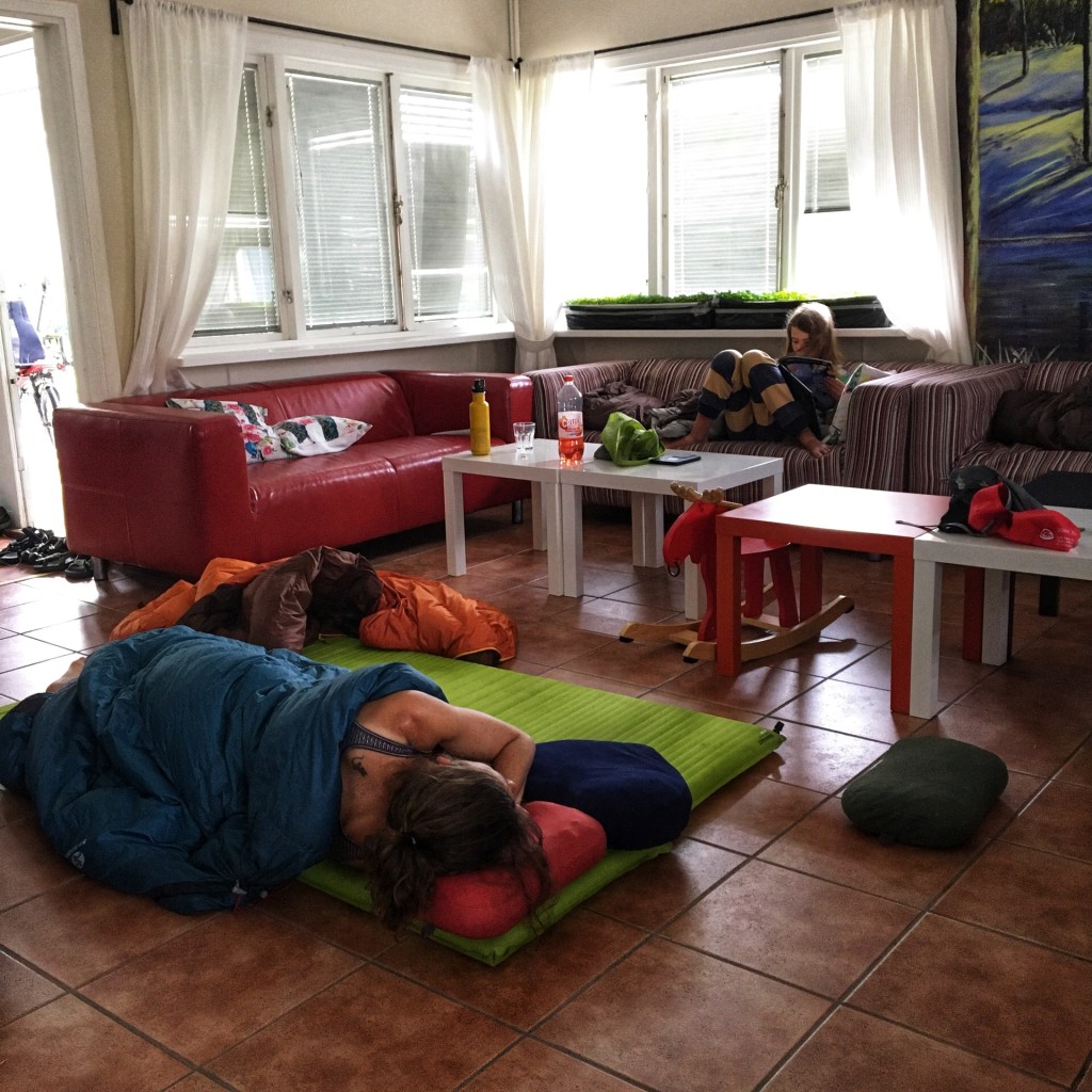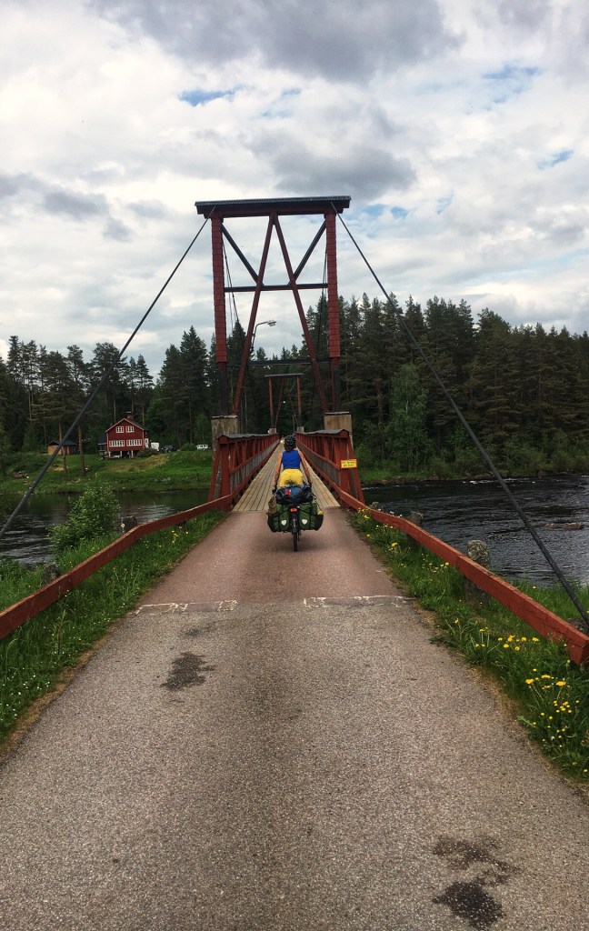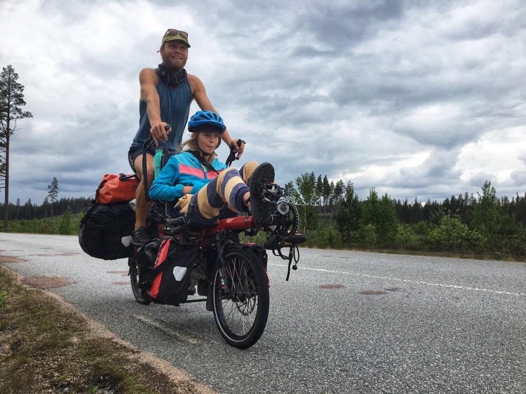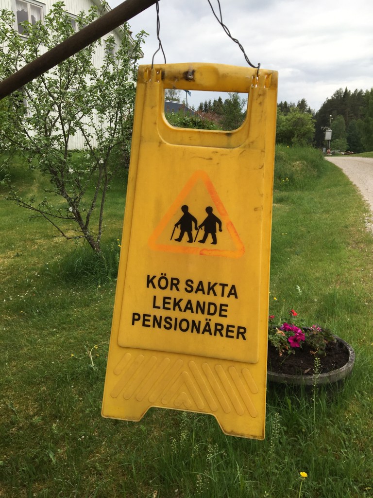 We beleven onze eerste lekke band van de reis. Gelukkig ter hoogte van een bakeri die uitgebaat wordt door een bejaard koppel. Ze hebben er de beste kanelbullars ooit. Met stukjes appel in en een beetje kardemom. Het is een grappig duo. Voor hun gevel hangt een bord “langzaam rijden, spelende gepensioneerden”