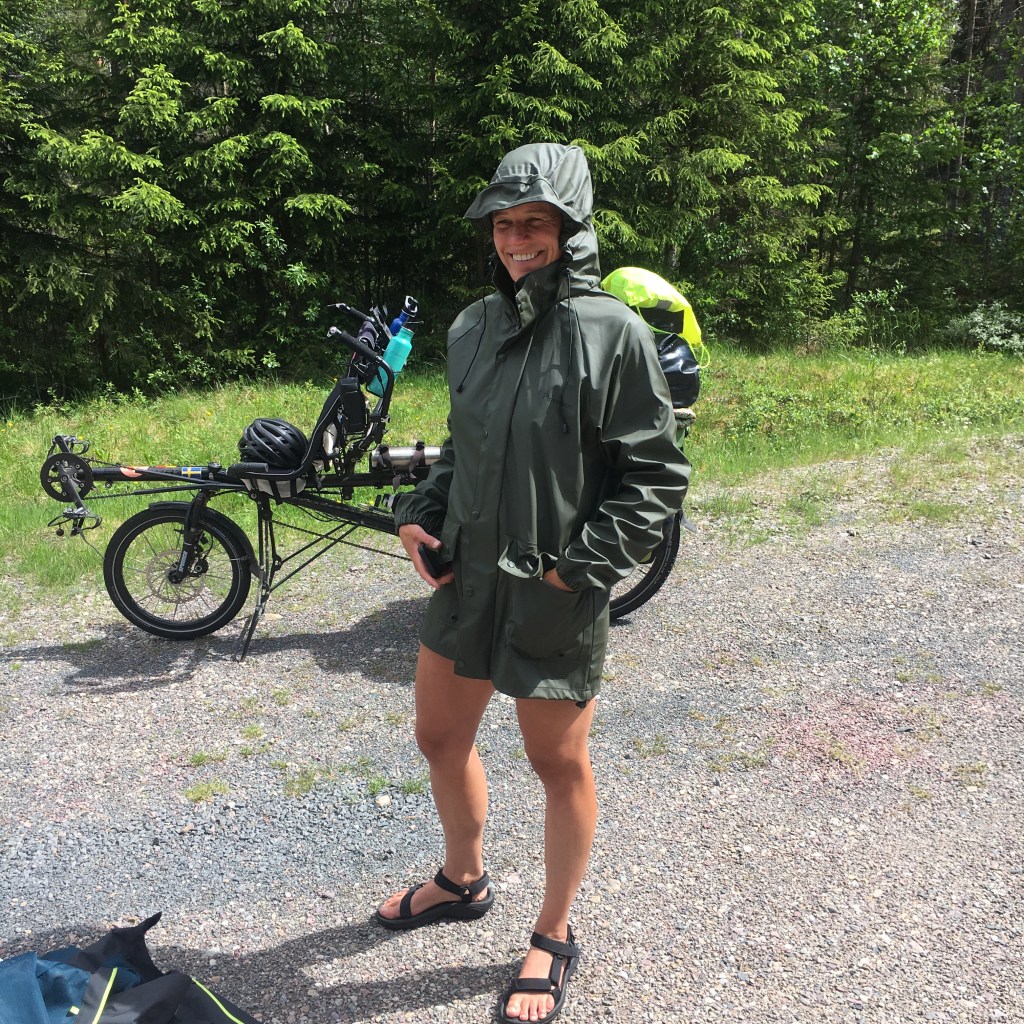In Idre slaan we nog wat noodzakelijkheden in. Wijn en een regenjas. Geen ademende Goretex maar ondoorlaatbare polyester. Laat de condens maar komen.