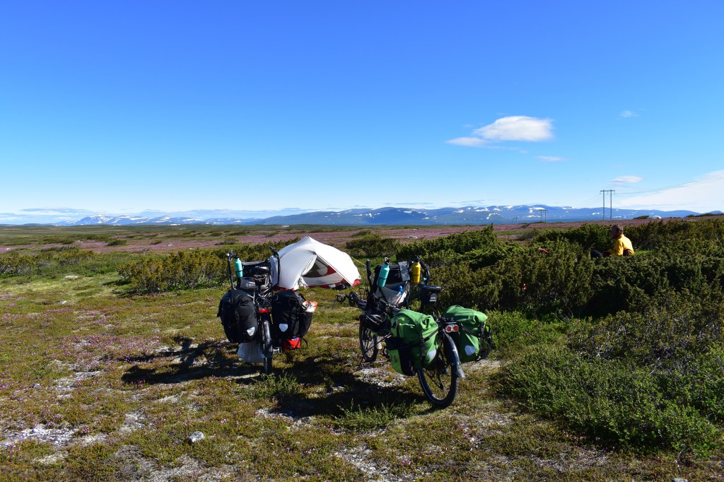 Het is een frisse en regenachtige nacht op het plateau. De tent staat allesbehalve vlak. Bart en ik liggen over putten en bulten en slapen in een bolletje waar we vlakte vinden. Dat lukt wonderwel. Tussen het grondzeil en de binnentent blubbert een plas water. Maar de ochtend brengt zon en dodelijke hitte in de tent. Opstaan dus. En koffiezetten in de zon.