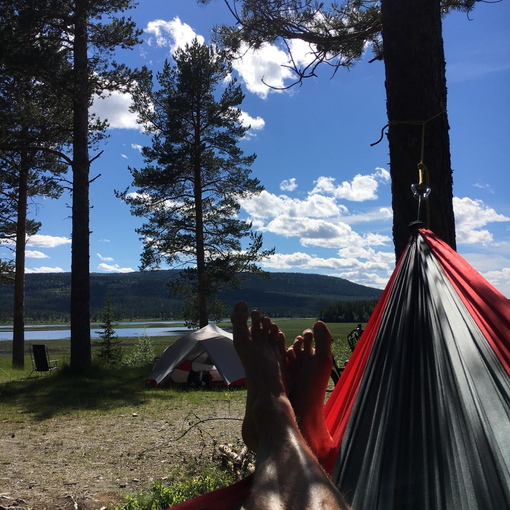 Helaas is de camping in Ljungdalen één en al tristesse. We rijden verder naar Storsjö Fiskecamp, een prachtig gelegen camping aan het Storsjön meer, 15 km verder. Het is er heel mooi en het loopt er vol mannen in vistenu. Er is een restaurant, een sauna en een fantastisch meer dat uitkijkt op de bergen.