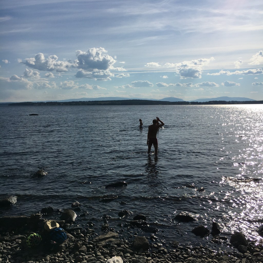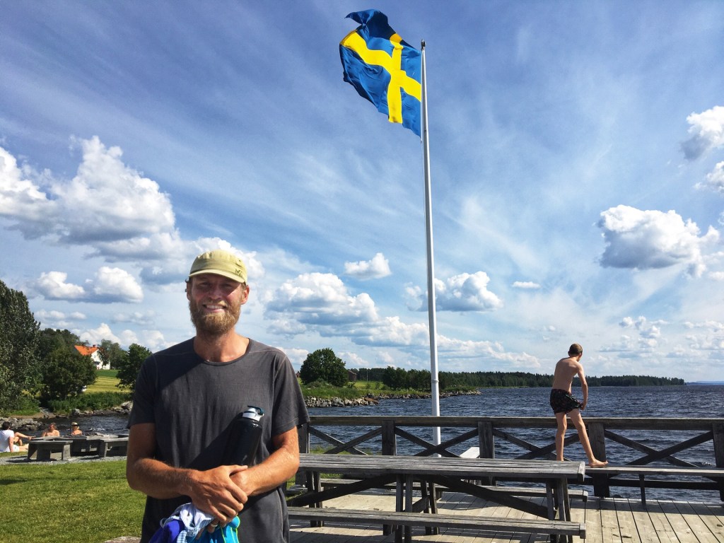 Het eerste uur van de dag rijden we nog op het plateau. Dan komt het Storsjön meer in zicht en is het gedaan met de schone onverharde stille wegen. We komen terug op een “drukke” weg terecht. Veel auto’s, veel mensen, veel huizen. Ik ben een beetje ontredderd en mis de rust en de leegte en de vissers. We rijden in de drukte, tussen de mobilhomes en de moto’s. We zijn wat ontredderd. De kinderen eten 2 keer taart. Eenmaal in een fjällbageri en eenmaal in een sommerbar langs de weg. Lekkere kladkaka!