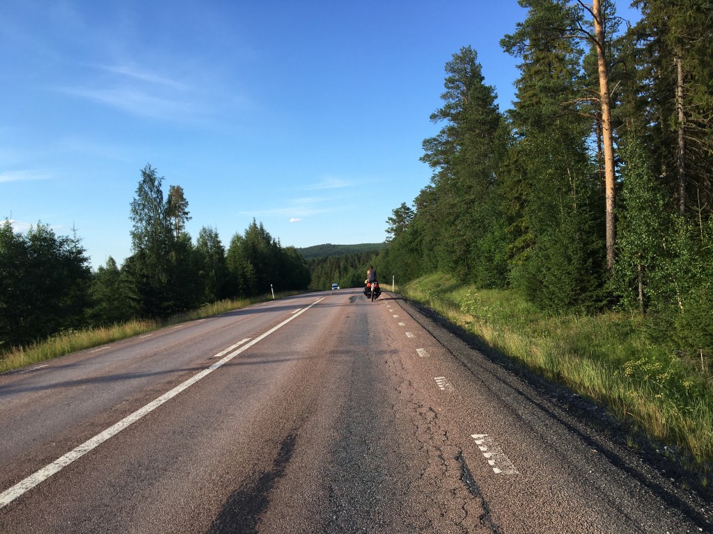 Adios Jämmtland, hej hej Västernordland. We zitten nog steeds op de snelle verbindingsweg die ons naar de oostkust zal brengen. Fietsen, zwemmen, eten, fietsen,… en zo trappen we opnieuw 80 km vandaag. Nog 100 km en we zijn in Örnsköldsvik aan zee. We kunnen ze bijna ruiken!
