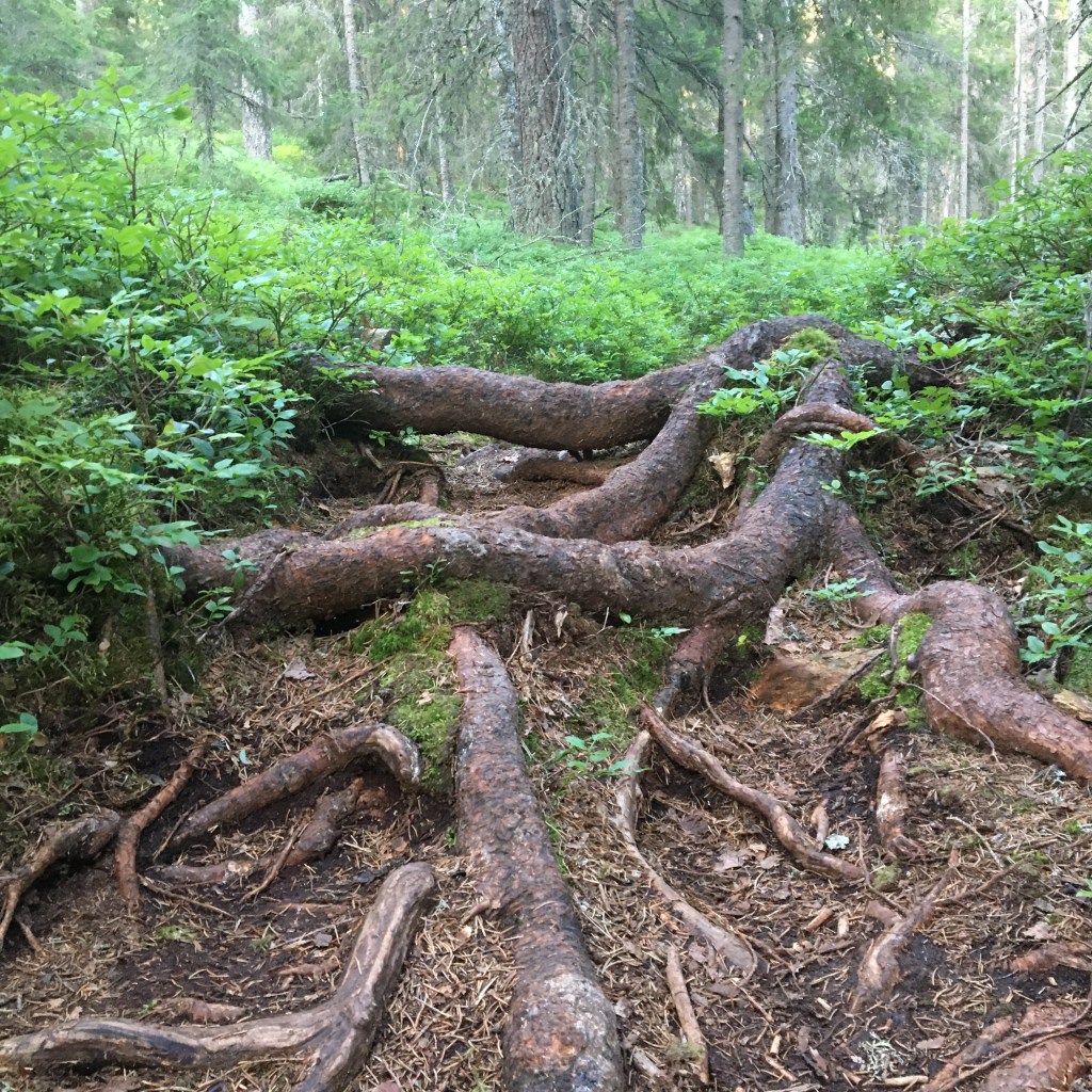 En dat doen we ook. Ik doe een ochtendloopje naar het meer van gisteren. Het is lopen zoals ik het het liefste doe. Huppen tussen dikke boomwortels en platte stenen, stijle klimmetjes in de schaduw van een groen woud. Ik loop rond het meer tot het pad plots stopt en er een granieten muur van 20 meter uit het water rijst. Ik kan klimmen, terugkeren of zwemmen naar de andere kant. Het wordt zwemmen en hoe zalig is dat! In knalhelder water met gigantische bomen op de bodem.