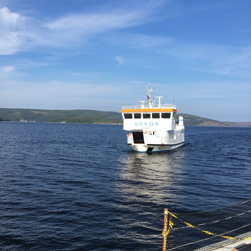 We ruimen ons nest op en staan zeer op tijd in de haven van Köpmanholmen. Er kon geen ticket voor de fietsen geboekt worden. We weten ook niet of ze eigenlijk wel mee kunnen en zijn een uurtje op voorhand om een eventueel B-plan te bedenken. Dat blijkt gelukkig niet nodig. De boot is groot genoeg. De fietsen kunnen aan boord.