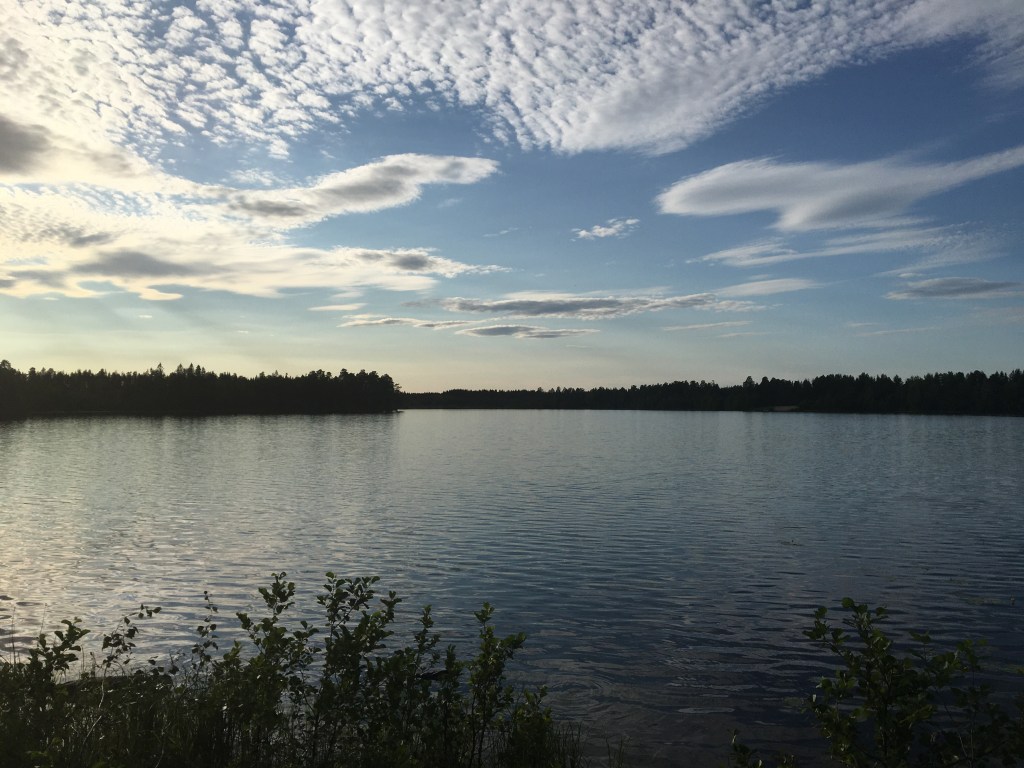 In de vooravond doen we een supermarktstop in Harmånger en rijden nog een paar kilometer verder naar een schiereilandje naast de weg waar we de tent opzetten. Het terrein is plat, er loopt geen E4, dat wordt lekker maffen straks!