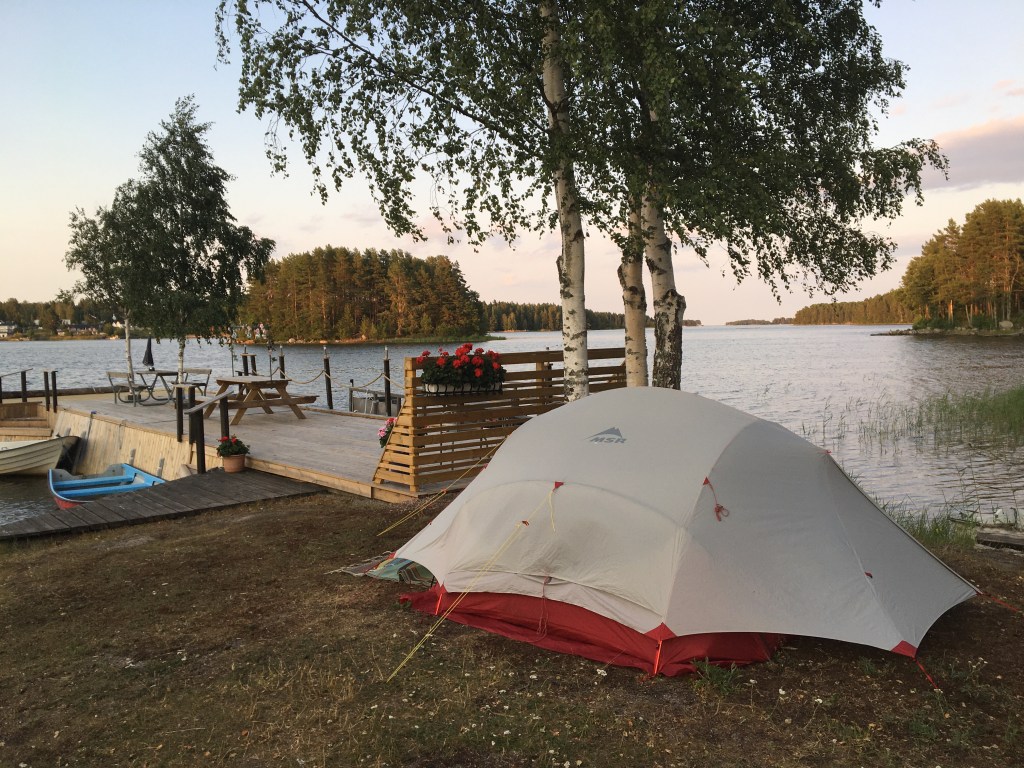 We rijden uiteindelijk 90 km vandaag en slaan onze tent op bij een Boat Club in Åsbacka. Tip top is dat hier. Ramon geeft het droogtoilet 10 op 10.