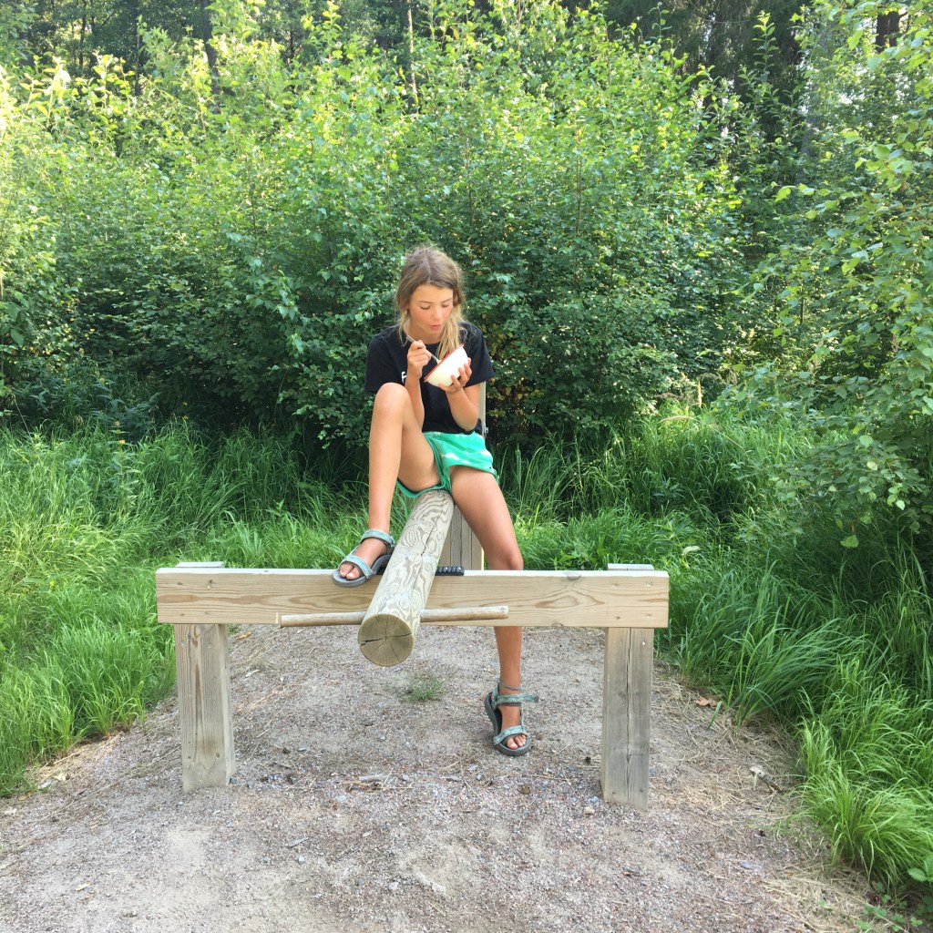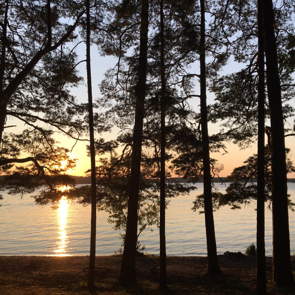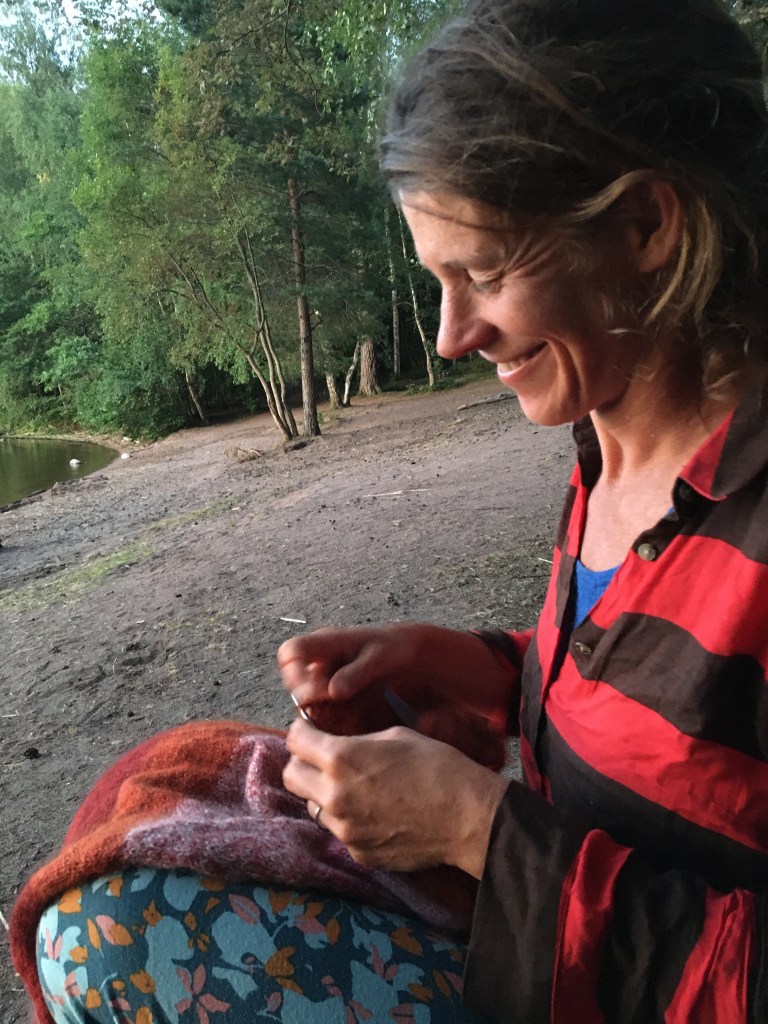 Vandaag zijn de temperaturen alweer tropisch. Fietsen is beter dan stilstaan, dus rijden we verder. We hebben gisteren en eergisteren een goeie voorsprong genomen dus mag het vandaag gerust wat minder zijn. We rijden langs Uppsala, doen een stop in de XXL om gasflesjes, regenbroeken en een halfuur airco en vinden een strandje aan een groot meer in het Kungshamn-Morga naturreservat. Wat een zaligheid! Iedereen plonzen, verse kleren, luieren, hangmatten ophangen, beetje breien, beetje lezen… meer zit er niet in voor vandaag.