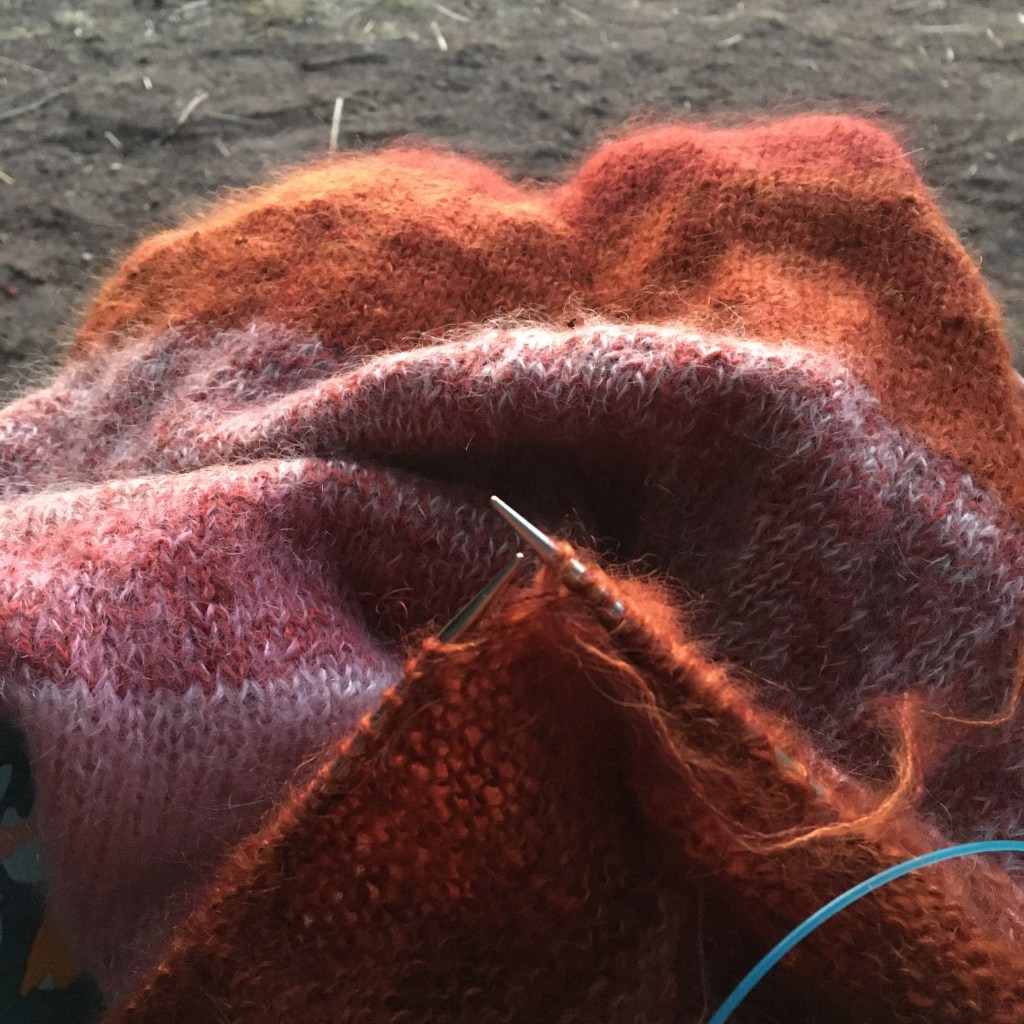Wat doen wij bij tropische temperaturen ? Awel een wollen sjaal breien!