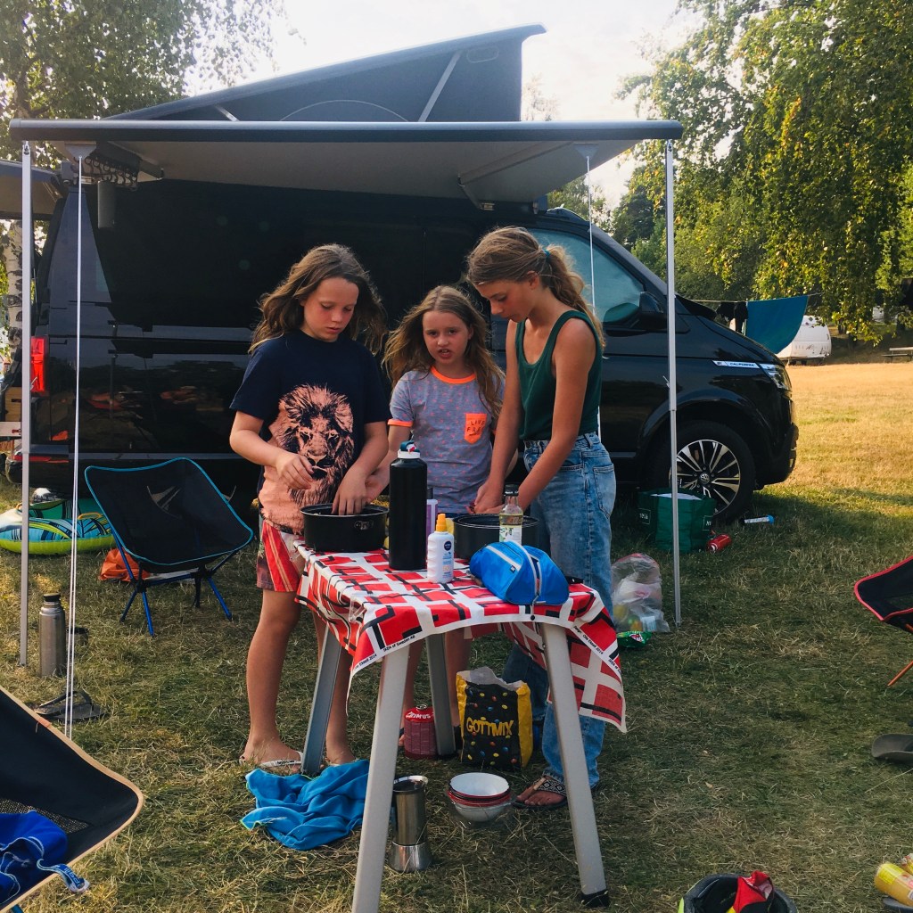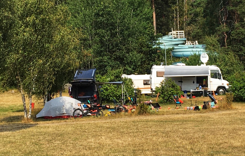De middag brengen we door op onze camping die het midden houdt tussen de weide van cactusfestival en Harry Malter. Vergane glorie, geel gras en fris bier. Er is een restaurantje met een met plastic klimop gedecoreerd terras. Je kan er vandaag enkel hamburgers eten, de pizzaman is om zijn vaccinatiespuit. Net als op cactus festival zijn we de eerste avond veel te hard gegaan en is het vandaag zeer rustig. Behalve voor de kinderen, die springen de ganse dag van de duiktoren en maken ‘s avonds heten duvel. De appelmoes is nogal lopend en zorgt ervoor dat het gerecht wordt omgedoopt tot gehaktsoep!