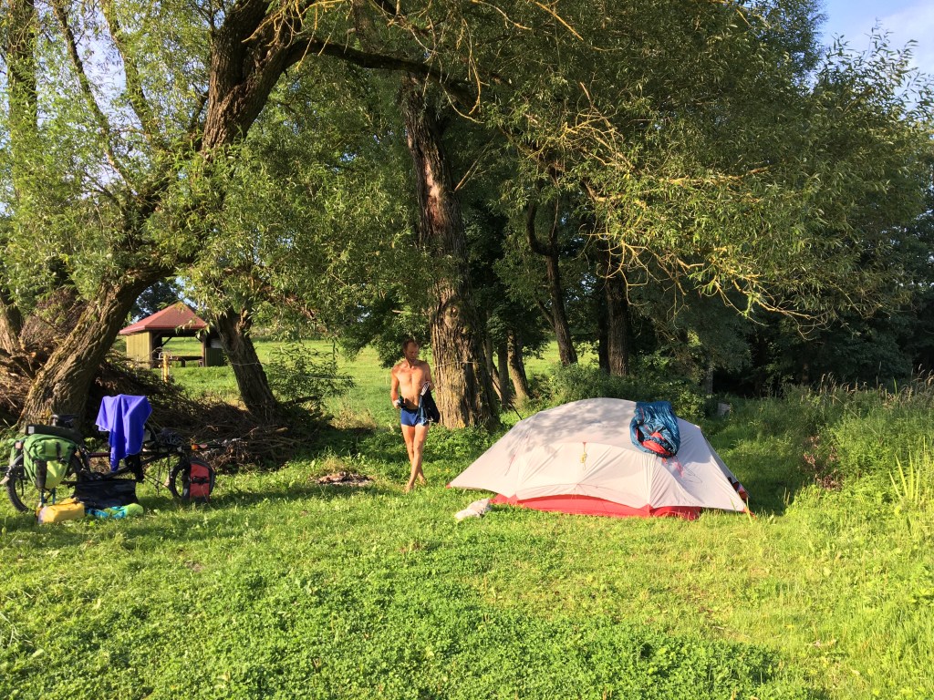De camping die we op de kaart vonden blijkt een zeer druk geval. We rijden verder en belanden uiteindelijk op een zeer kleine campinkje aan een meer.