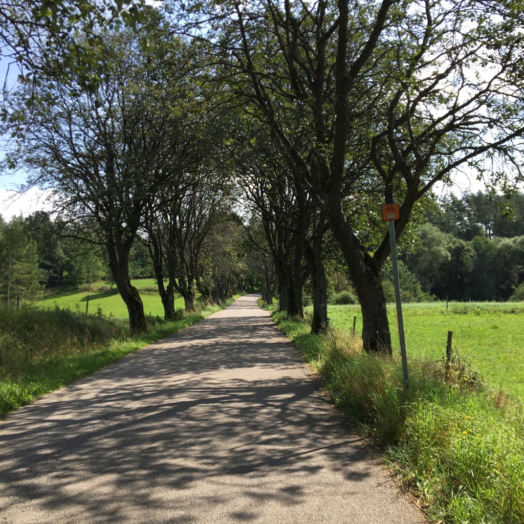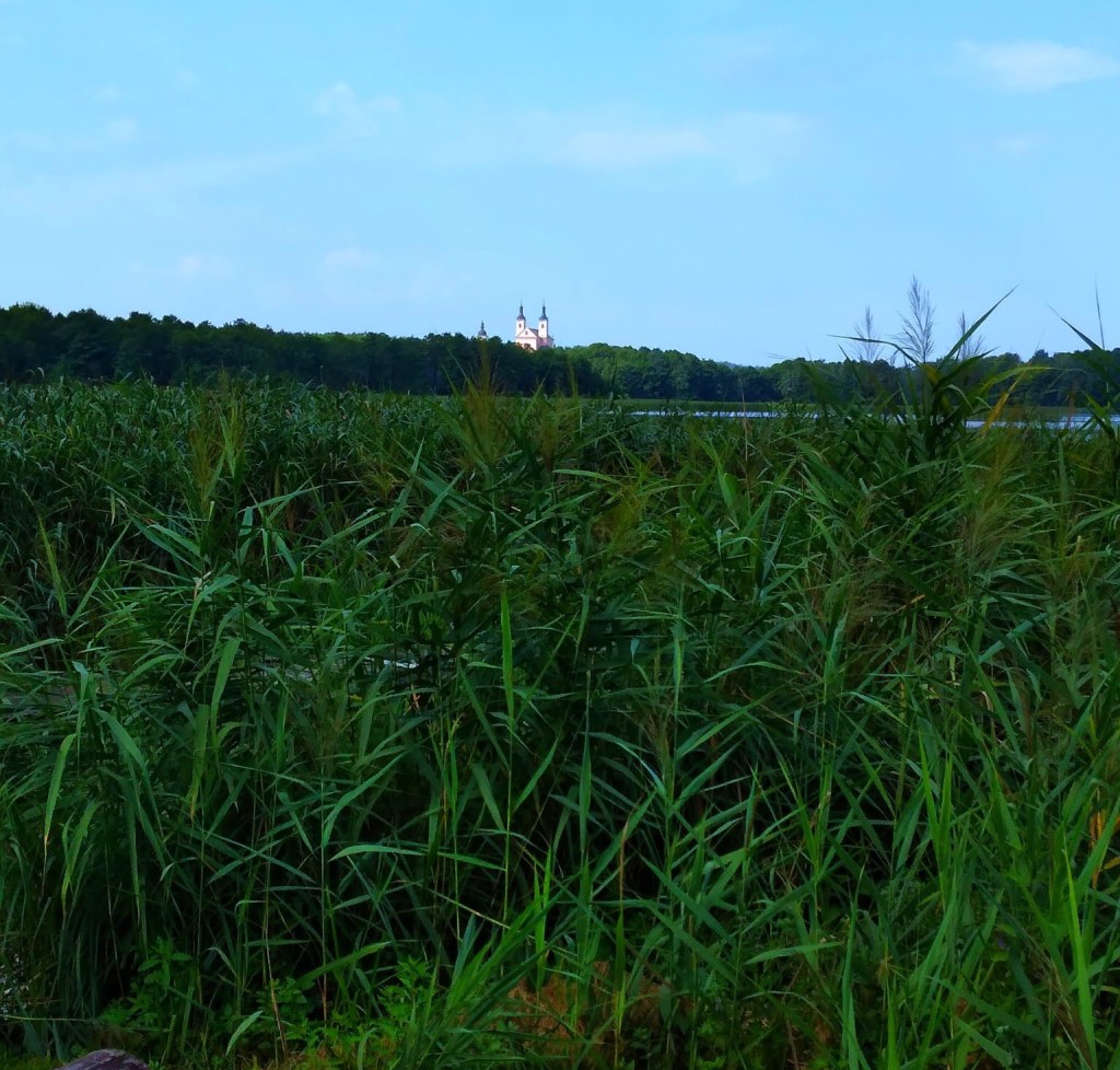 Het is een prachtige dag vandaag. We rijden nog steeds tussen de velden maar de paden zijn mooi, de uitzichten ver en het gebied dunbevolkt. Er is enkel maïs, koeien en graan en of course kerkjes en kruisen. They make my day!