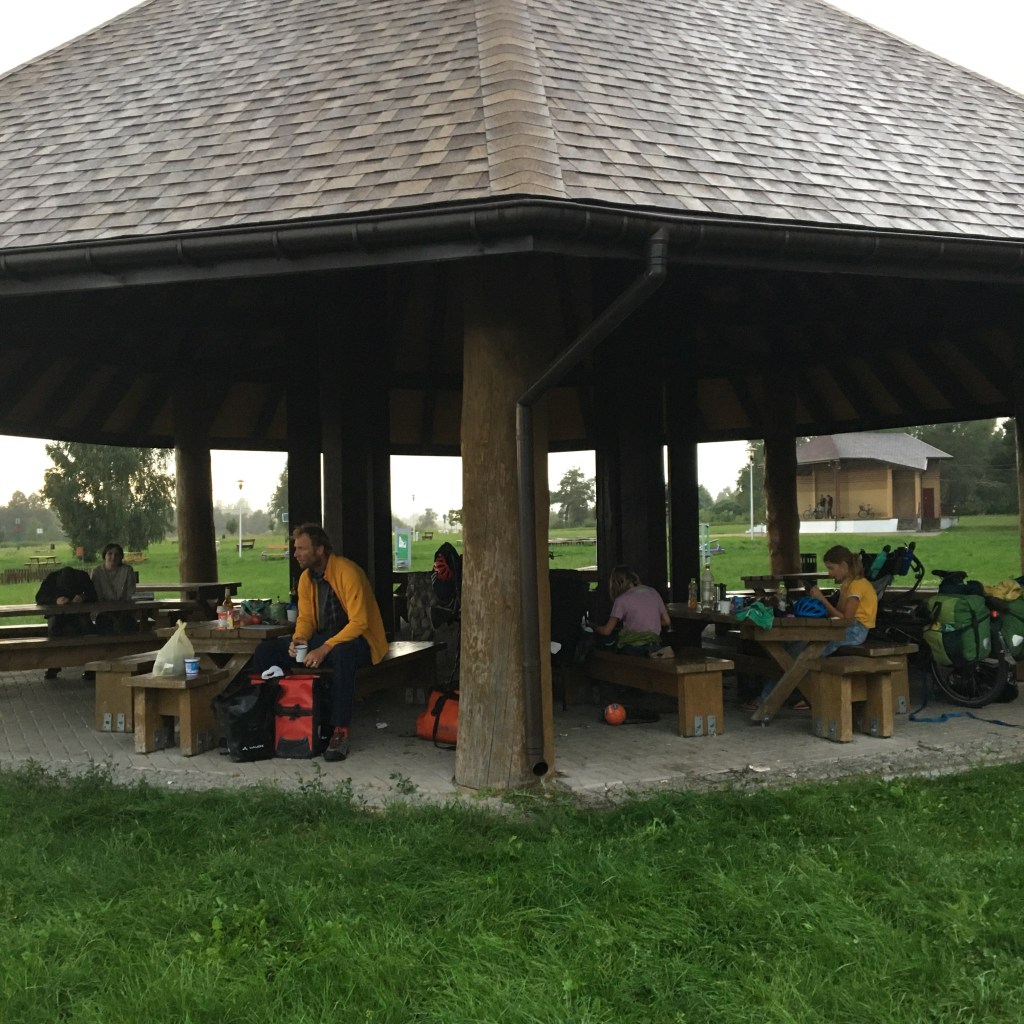 We eindigen vandaag in een park aan een meer in Zarzeczany. Er is alles wat we nodig hebben. Een meer om te plonzen, een paviljoen om te schuilen en een volleybalveld om de mannen te verslaan in netbal. Uiteraard komen we eerst nog een zotte kerk tegen.