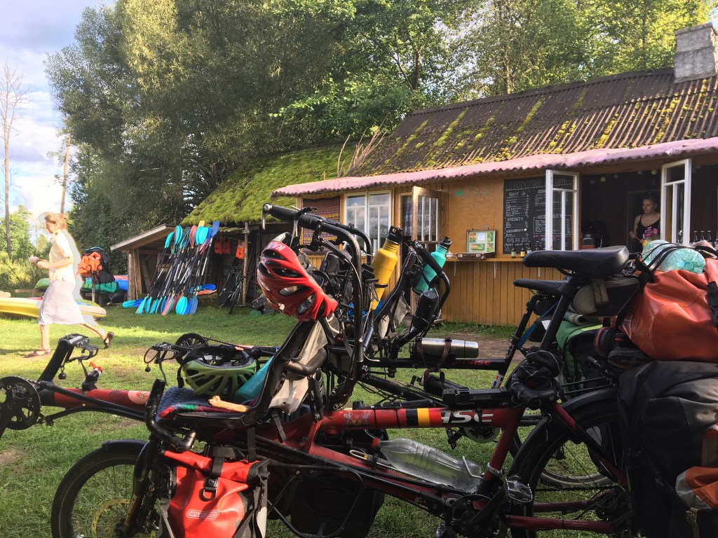 Ons eindpunt voor vandaag is Białowieża city, het stadje grenzend aan het Nationaal Park. De plek is een toeristische hotspot. Het is er druk. Een beetje van de weg bespeuren we een alternatieve zomerbar. Je kan er kanos huren, lokale biertjes drinken en taart eten. Perfecte afsluiter dus voor de etappe.
