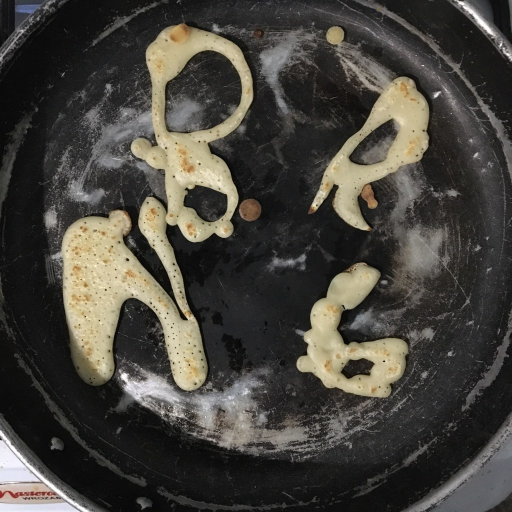 ‘s Avonds maken we een berg pannenkoeken. Nanou draait nog een gepersonaliseerde apero pannenkoek voor iedereen. Lekker!