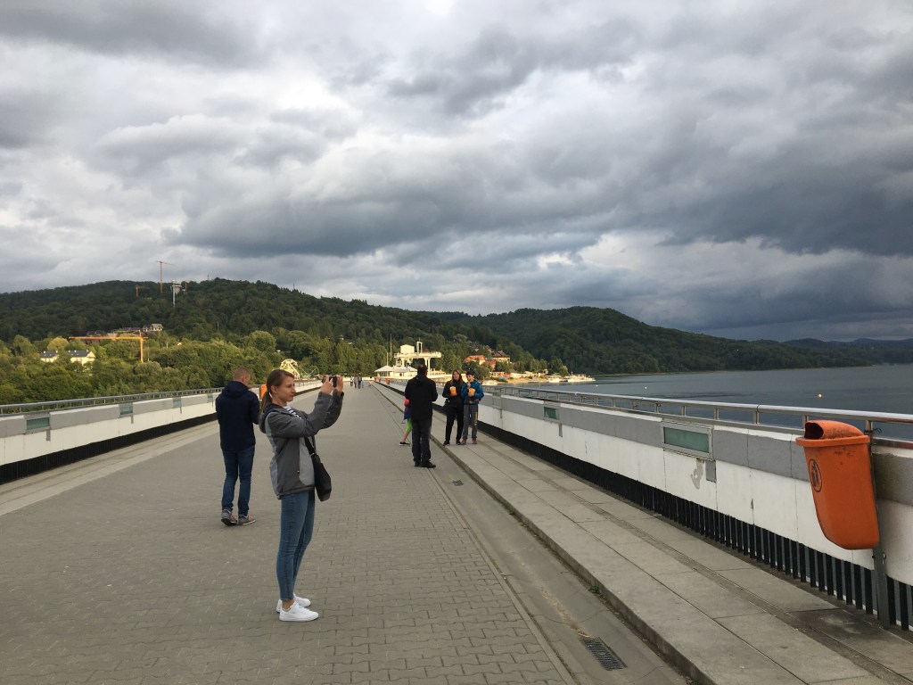 Leeg en hongerig komen we aan in Solina, een vreemd oord in een prachtige omgeving. Het dorp ligt aan een gigantische stuwdam en bestaat vooral uit straatjes met lunaparken, restaurants en cafés. Errond niets dan water en groene heuvels. Van hieruit is het 15 km naar Lesko, onze DPD depot voor de kinderen hun schoolboeken.