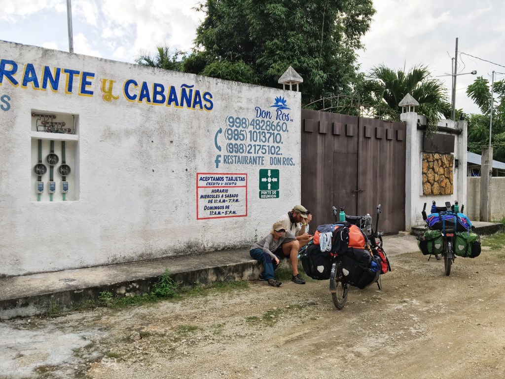 Rond 16u rijden we verder richting Leona Vicario, een slaperig jungledorp op 40 km van Puerto Morelos. We hebben een camping op het oog langs de weg naar Coba, 20 km verderop. Wanneer we telefoneren om te checken of er een restaurant is krijgen we te horen dat de camping gesloten is in de week. Er is niemand, neen we kunnen er echt niet kamperen. Langs de weg, in de schaduw zoeken we op google maps naar cabanas in de buurt en vinden vlakbij een hotelletje. Don Ros. We krijgen er een kamer voor de nacht. Een douche, een ventilator, een zwembadje, pure luxe dus!