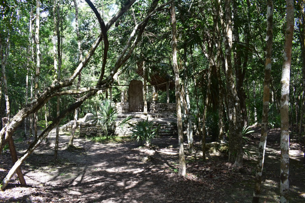 Om 9u staan we aan de site. Het park gaat net open en er zijn niet veel andere toeristen. De ruïnes zijn echt indrukwekkend. Vooral de aanblik van de tempels overgroeid en omgeven door jungle zijn mooi. De jungle is ook niet overal geruimd en veel structuren liggen nog verwoekerd onder het groen. Tijdens onze wandeling op de site zien we prachtige vogels, een kolibrie, slangen, leguanen, een aapje en gigantische vlinders.