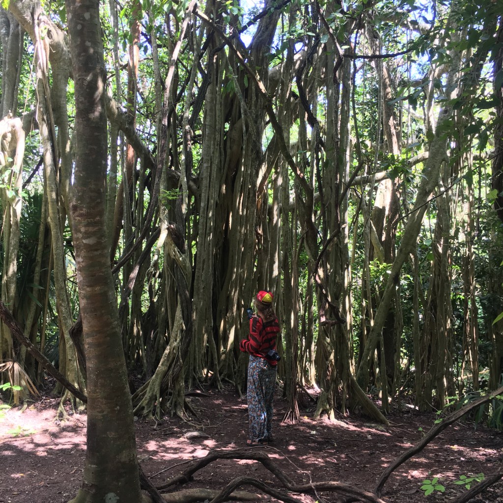 Drukker bezocht is echt wel drukker bezocht. Wanneer wij in het water zitten daalt een grote bus Amerikaanse toeristen de cenote in. Ze maken heel veel leven maar zorgen ook voor plezier. Wanneer de bus vertrekt zitten wij even in het zonnetje bovengronds en zien 2 mensen achter de bus rennen. Niet op de bus geraakt. Op slippers en met hun zwemgerief in de hand lopen ze achter de grote witte bus maar die ziet hen niet en rijdt het junglepad op.