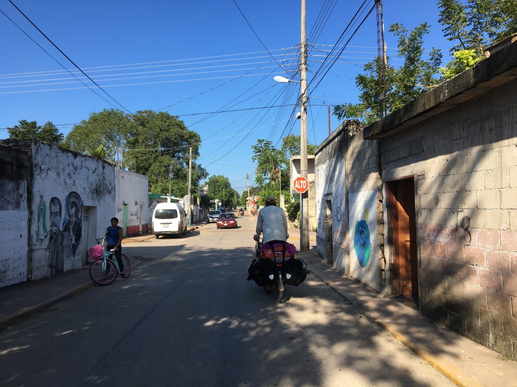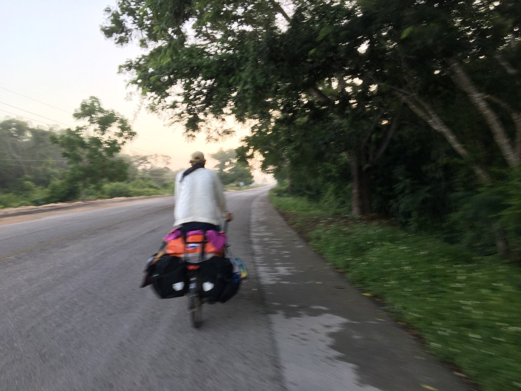 Geen extreme hitte en vochtigheid voor ons vandaag. Om 6:45 zitten we op de fiets voor een ritje van 65 km. We rijden een nog slapend Coba uit. Geen koffie. Enkel een banaantje en een slokje water. Spartaans!