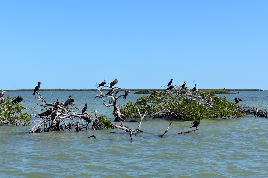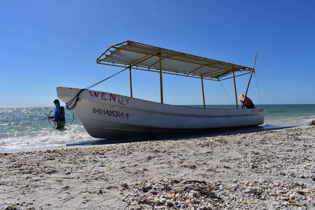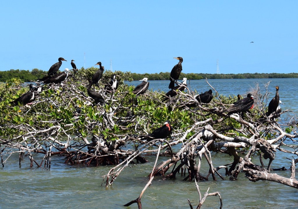 Isla Aguada is een parel, een kleurrijk vissersdorp waarvan de hoofdstraat aan een filmdecor doet denken. Palmbomen, schelpenzand, een turquoise muurtje aan een smal strand met een rode stenen strandboulevard, pelikanen, overvliegend of in rust op een paal en dolfijnen! Hier zie je de dolfijnen in de verte opspringen uit de zee. We zijn in vakantiemood en bekomen grondig van de 95 km van zaterdag. We blijven een dag extra ter plekke.