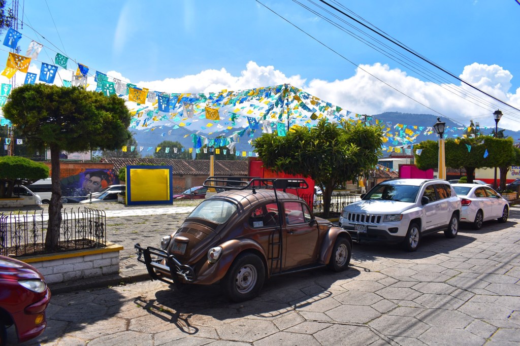 San Cristobal, we love it. We logeren in een veel te gezellige hostel met weelderig binnenplein en zonnig dakterras. Onze 2 nachten hebben we uitgebreid naar 7. We plannen enkele day tours met een busje en enkele korte uitstapjes met de fiets. We zien af van lange fietsritten hier in Chiapas. De bergen zijn zalig maar de wegen smal, stijl en druk. San Cristobal zelf is een kleurige, levendige, prikkelende koloniale stad omringd door bergen. Het ligt hoog, het is koel en je drinkt er de beste koffie. Geuren, kleuren, kraampjes, de straten zijn recht en overal waar je kijkt zie je de groene bergen.