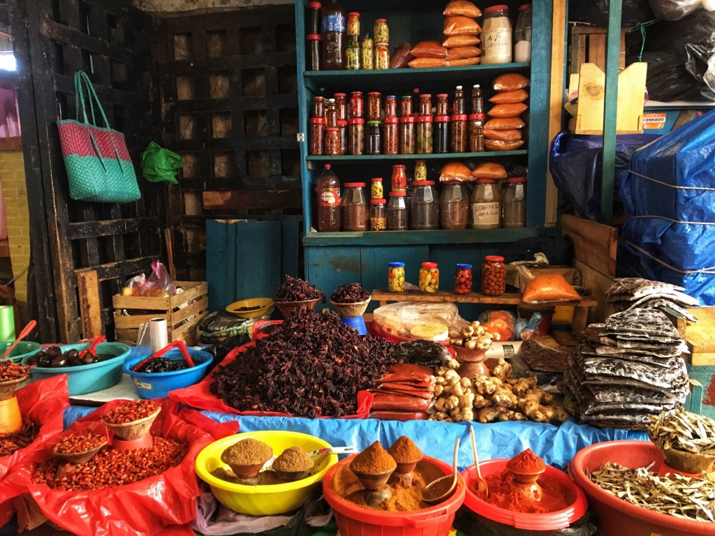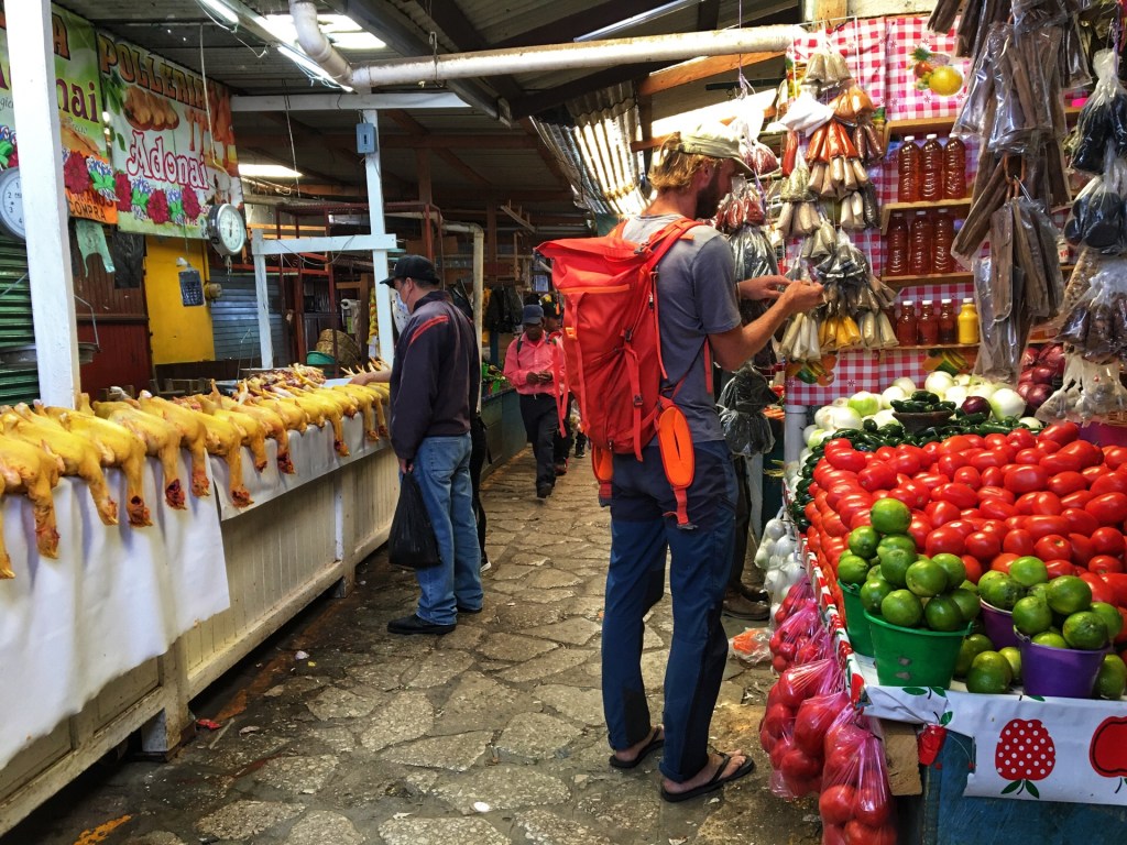 Daarna duiken we de centrale markt in. Kippen, orgaanvlees, vis, garnalen, jeansbroeken, groenten, kruiden, zoetigheid, … er is weinig dat er niet wordt verkocht. We kopen alles voor spaghetti en kruiden, cactusvijgen, kaas, bananen, tamales, cake en brood. Morgen doen we een kamikaze trip naar Palenque. We vertrekken zeer vroeg en komen zeer laat terug. We zullen alleszins geen honger lijden onderweg.