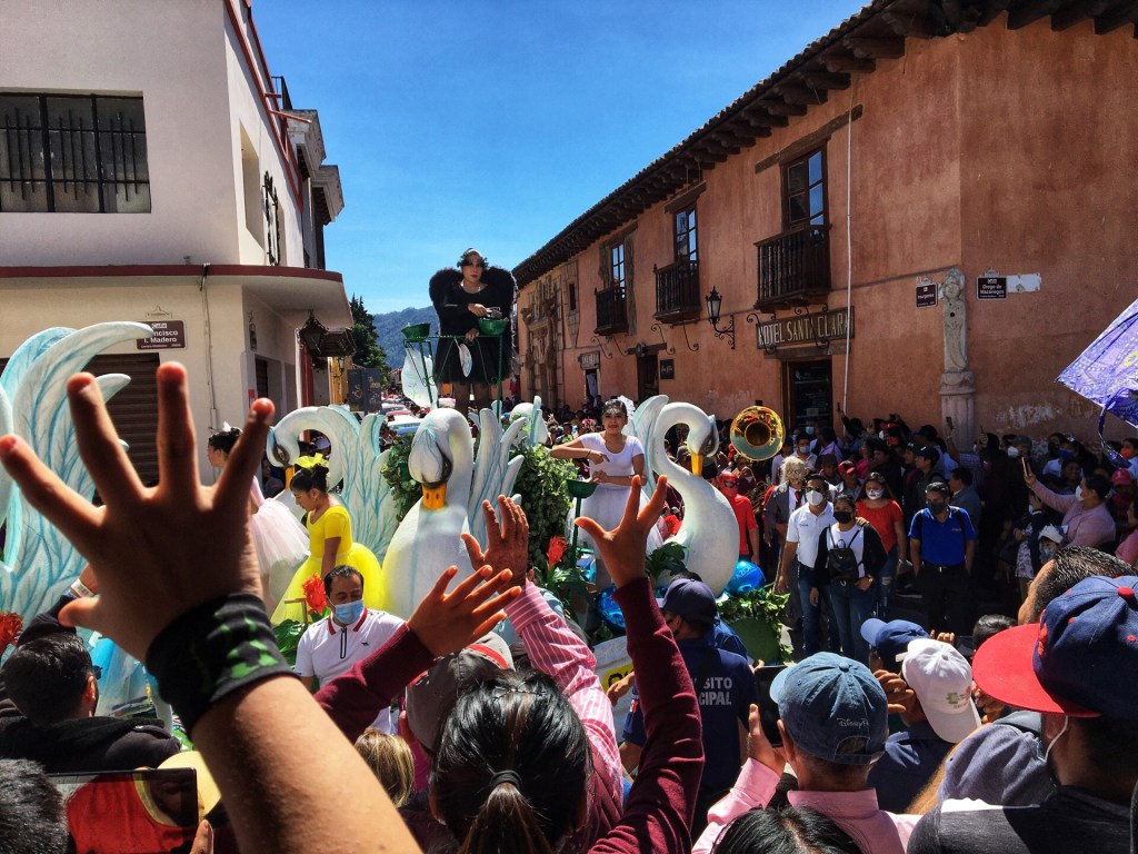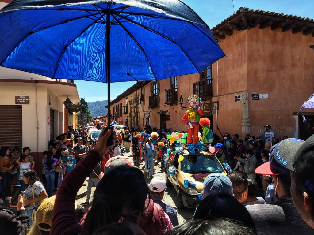 Het is echt zondag. Bart en ik gaan een koffietje drinken in het centrum en naar de markt. Terwijl we de koffie drinken, klinken er steeds luidere knallen en zien we in een tegenoverliggende straat een stoet naderen. Het is feest van de Barrio Santa Lucia. Er wordt muziek gemaakt en gedanst, mensen zijn verkleed, op de wagens staan kinderen die met snoep, stiften en stylo’s gooien. Ze gooien hard en welgemikt. Naast ons staat een man te praten, hij let niet goed op en krijgt 2 grote whiteboard stiften keihard tegen zijn hoofd gekeild.