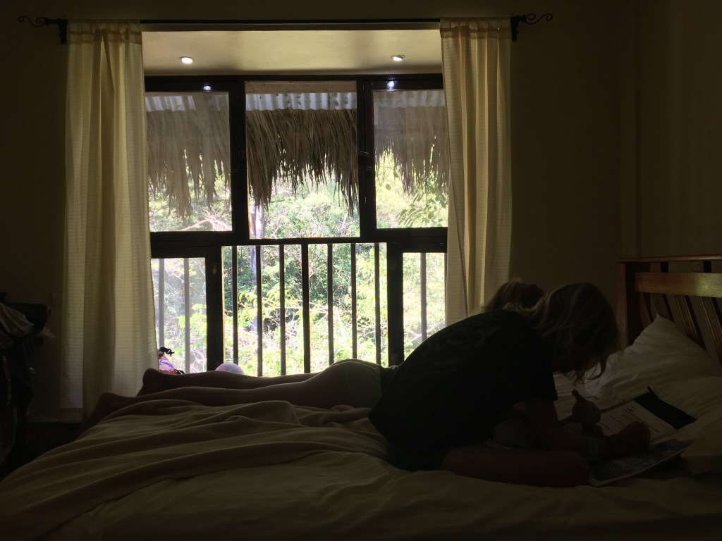 Na de adrenalinekick gaan Nanou en Ramon wat knutselen in de cabana. Bart en ik nemen nog een duikje in de azul rivier.
