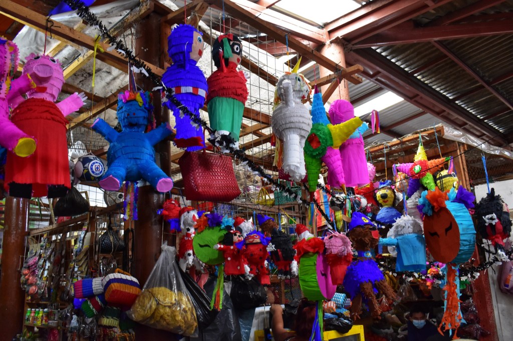 Ons traject wordt voorspelbaar. We bezoeken de markt waar Nanou zich vergaapt aan alle pinata’s. Ze is volgende week jarig en toch ontgoocheld dat we geen giga pinata willen meesleuren op de fiets.