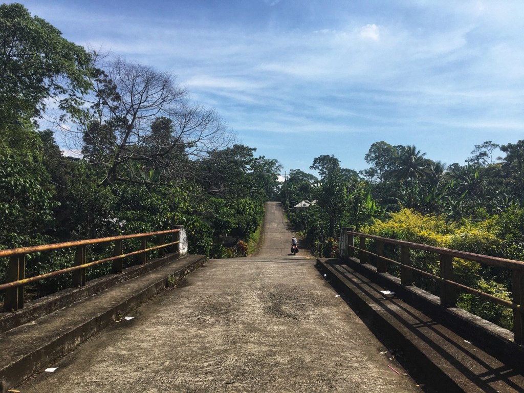 De klim begint met een moordende helling, het is direct alles uit de kast. En dat is de trend voor de rest van de etappe. Het is Vlaamse Ardennen stijl. Stijl omhoog en dan weer recht naar beneden. Ik voel me niet fit, mijn keel doet pijn, ik adem moeilijk, mijn benen zijn slap. Ook Ramon heeft een off day. De weg is prachtig met gigantische blaren, bomen en regenwoud, er kwetteren overal exotische vogels rond ons maar hij schenkt er geen aandacht aan. Zelfs de Spotify lijst met Franse chansons kan hem niet opbeuren.