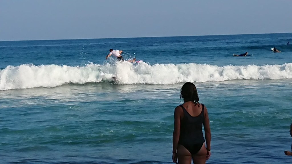 De golven blijven hoger en krachtiger de rest van de week maar er zijn ook plaatsen om te liggen waar het rustiger is en ik mijn vertrouwen terug vind. Bart is ondertussen vele niveaus gestegen en mijn steun en toeverlaat in het water. De laatste dagen word ik toch vooral geflusht en bestaan mijn sessies vooral uit zo hard mogelijk wegpeddelen van de big waves (sets van 3 meter no kidding) en de aanstormende planken.