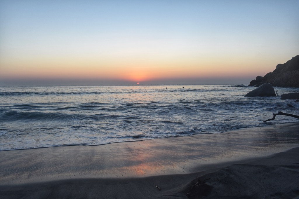 10 dagen gaan we op en onder in de surf op Barra de la Cruz. Het is verslavend. Om 6u, nog voor de zon opkomt, liggen we in het water. De zonsopgang is telkens een pareltje. De lucht kleurt oranje, paars, blauw en dan verschijnt er boven de oceaan een vurig randje. De zon komt op uit de zee, ik kan er niet genoeg van krijgen, als aan een touwtje wordt ze van achter het wateroppervlak omhoog getrokken.