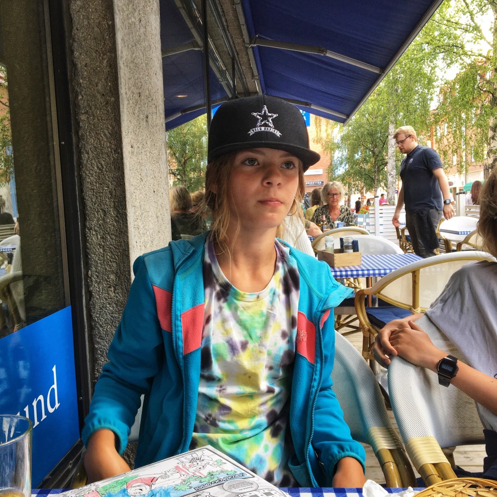 Vandaag hebben we een tijdslot in Paradiset, een tropisch zwemparadijs in Örnsköldsvik. We moeten er vroeg voor uit de tent. Het tijdslot vangt aan om 9u. Ons bioritme is zodanig in de war door het nachtlicht dat er niemand slaapt voor middernacht en er ook niets gebeurt voor 10u ‘s ochtends. Opstaan om 7:45 is een grote uitdaging. Alle alarmen worden gezet. We geraken er op tijd. De kinderen vinden de glijbanen geweldig. Ik vind de kleedkamers de max. Mannen en vrouwen apart in 2 grote, propere kleedruimtes met douches, kastjes, haardrogers, bankjes en een sauna. Je schoenen moet je uitdoen voor je de kleedkamer betreedt. Het is er proper en gezellig, bijna een wellness. Voor mij mag het zwembad daar stoppen. Maar niet voor de blondies. Slieren en plonzen, tot het tijdslot op is.