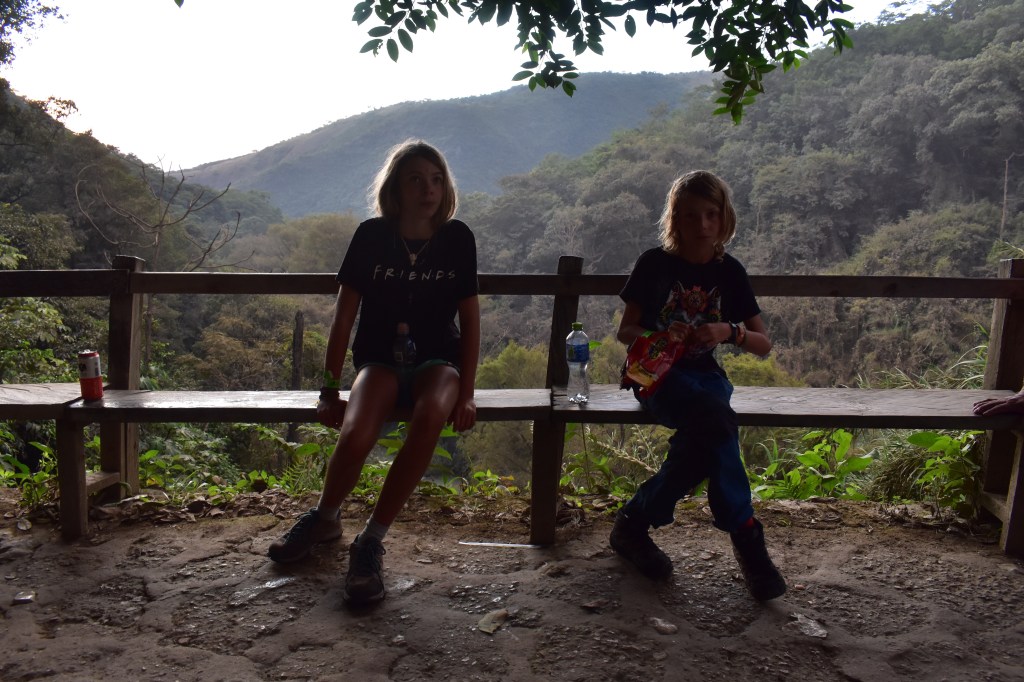 Rond 15u komen we aan in Comitán. We rijden naar het ADO busstation en kopen tickets voor de bus naar Tapachula morgen. In het centrum vinden we een hotelletje, nemen de beste douche ooit en gaan eten. Comitán is een levendig stadje met een gezellig plein en veel terrasjes. De kinderen eten een lekkere spaghetti met chorizo, Bart en ik een visje. Too much meat last month. Maar eerst een lekkere Margarita!