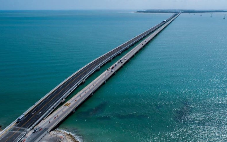 Hasta luego Isla Aguada, schattig vissersdorp aan de Golf van Mexico. We rijden nog een rondje door het dorp, zwaaien de pelikanen aan de lagune uit en rijden de grote brug over naar Isla Carmen. De Puente de la Unidad is met haar 3,2 km de op 1 na langste brug in Mexico en daar mogen wij overrijden.