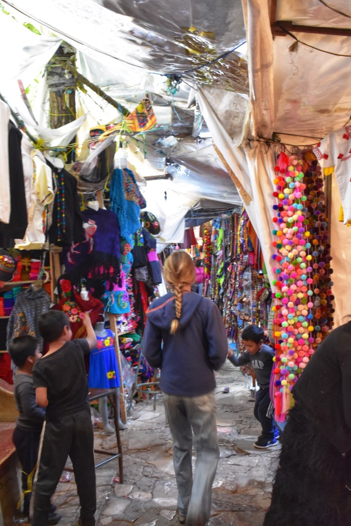 Zelf zijn we ook snel uitgewandeld, de kinderen zijn er niet rouwig om. Een koffietje en we bollen terug naar San Cristobal. Bergaf deze keer, de stad komt snel dichtbij, we glijden vlotjes terug het centrum binnen. Een ommetje langs de carneceria want vanavond eten we worst met appelmoes en puree!
