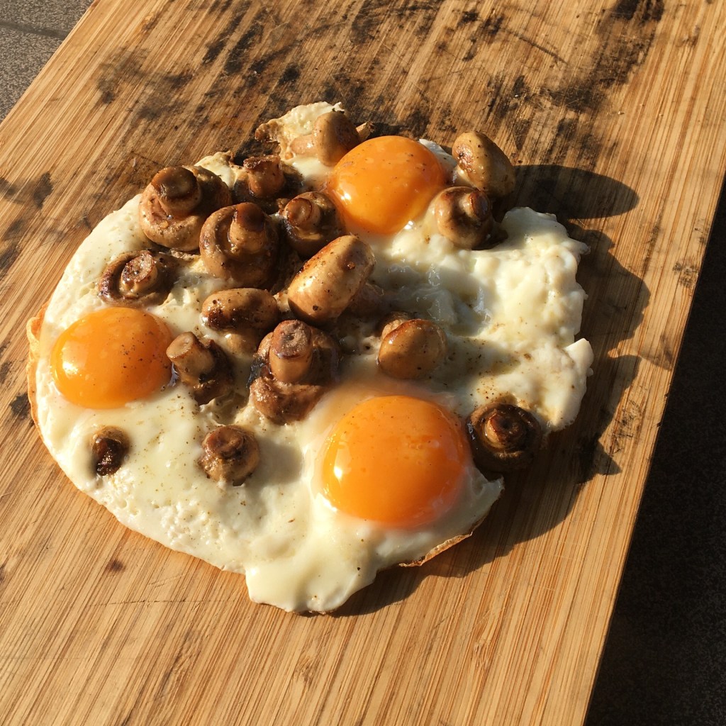 Wanneer al de etenswaren zijn uitgestald begint het te druppen. Niet te negeren. Maar met al die bomen is er rap een tarp gespannen en kan de lazy lunch helemaal beginnen. Nog een koffietje en nog eentje. En nu weer weg geraken…